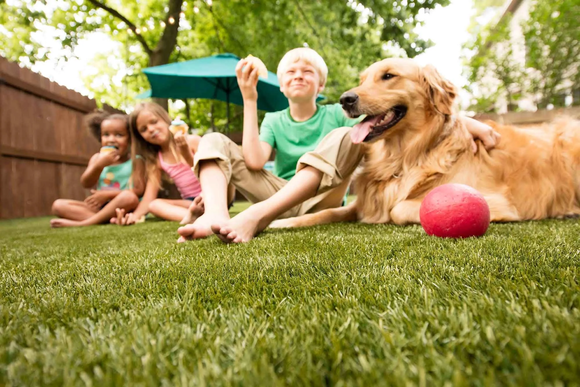 Additionally, if you invest in top-notch grass for your family, and your furry friends, your grass could last fur-ever (Not literally forever, but all of our artificial grass is covered under our 10 year warranty, so you know it will last a very long time)!
