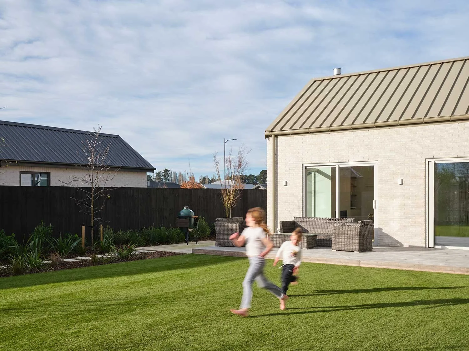 A stunning home designed by Performance Architecture and masterfully built by Clive Barrington Construction. Once home to patchy dog spots, this area is now a thriving, natural looking lawn where the dogs and kids can play. The new Hero 30mm artificial turf perfectly complements the beautiful look of the home.