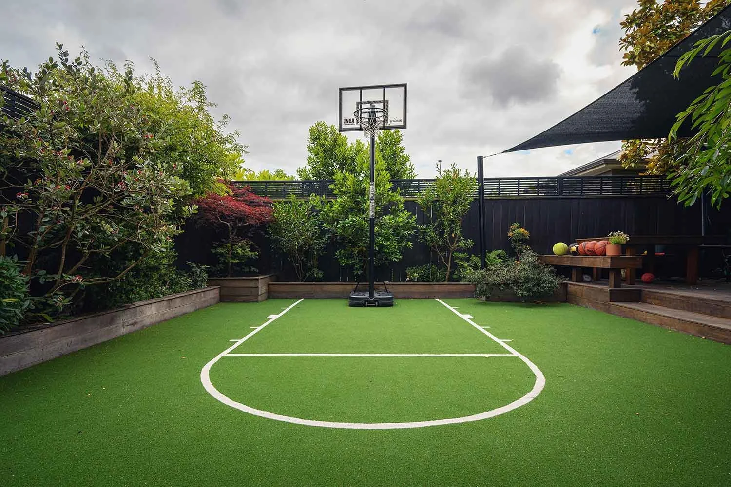 A backyard basketball court built for play